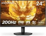 KOORUI 電競顯示器,24 吋快速 IPS 電腦顯示器,200Hz FHD HDR400 顯示器,1ms PC 螢幕,90% DCI-P3 色域,自適應同步,超薄框架,VESA 安裝,可安裝, HDMI 2.0,DisplayPort 1.4