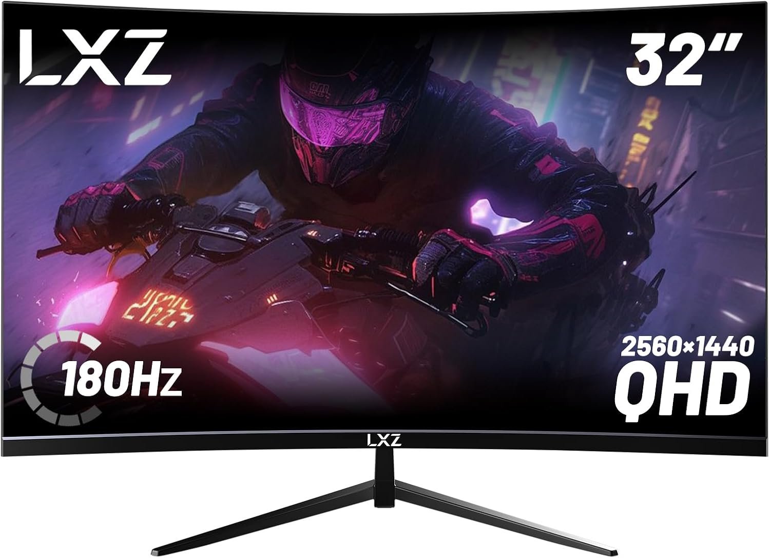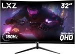 LXZ 彎曲 32 吋遊戲螢幕 1500R、2K QHD 180hz 無框顯示器 99% sRGB、178°寬視角、顯示埠 HDMI – 黑色
