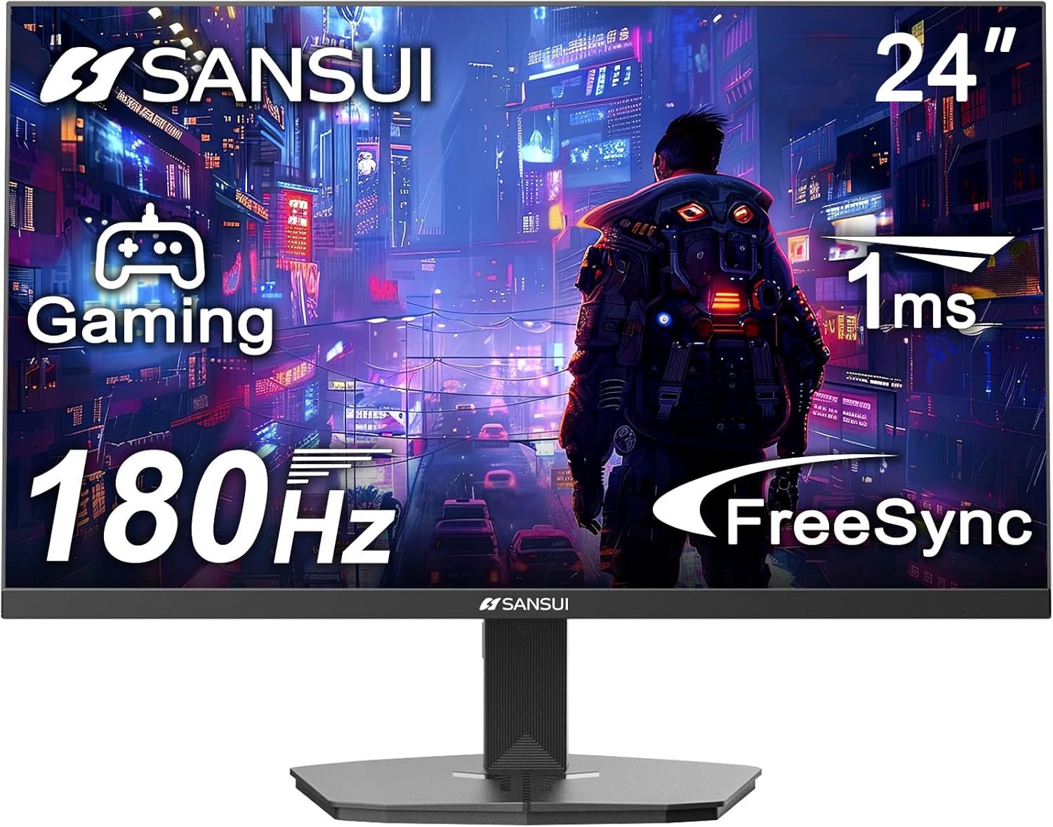 SANSUI 24 吋遊戲顯示器 180Hz、DP 1.4 和 HDMI 2.0 連接埠高刷新率電腦顯示器,賽車FPS RTS 模式,1 毫秒回應時間 110% sRGB (ES-G24F4,含HDMI 線)